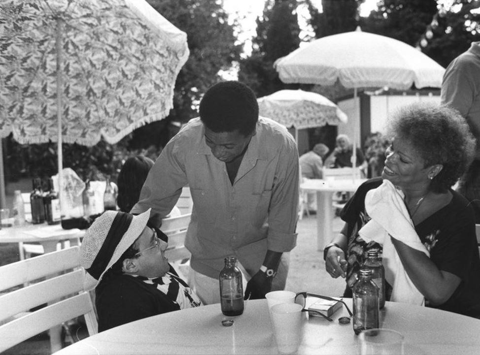 Michel Petrucciani, Tania Maria y Wayne Shorter en una pausa en el Festival de Jazz de Niza, 1986.