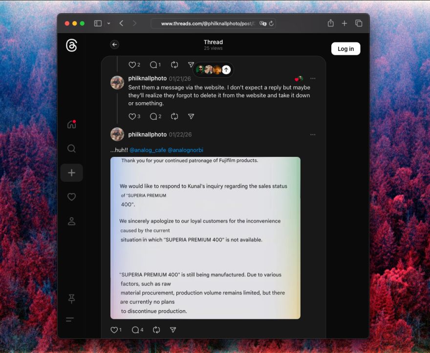 Photograph of an American bald eagle in flight with dark out of focus branches and a blue sky in the background. The view is from below with the bird's entire underside and head visible. The eagle's wings are spread wide and its legs and tail are pulled down and forward indicating it may be hovering briefly while its head is turned to the right and down in profile suggesting it may have spotted a fish in the waters below. Bald eagles have brown body feathers, white head and tail feathers, clear light yellow-green eyes with large pupils, yellow-orange beaks that curve downward to a point, yellow-orange legs, and yellow-orange feet that end in sharp black talons.