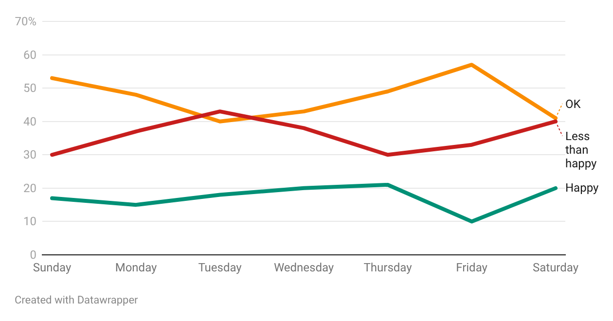 How happy was the Fediverse this past week? Looks like Thursday was our happiest day for some reason - but it took a sharp dip on Friday! Whatever happened to TGIF?