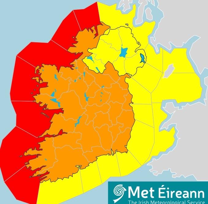 Met 脡ireann has updated their #StormBram warnings, with status orange warnings across the 26 counties.