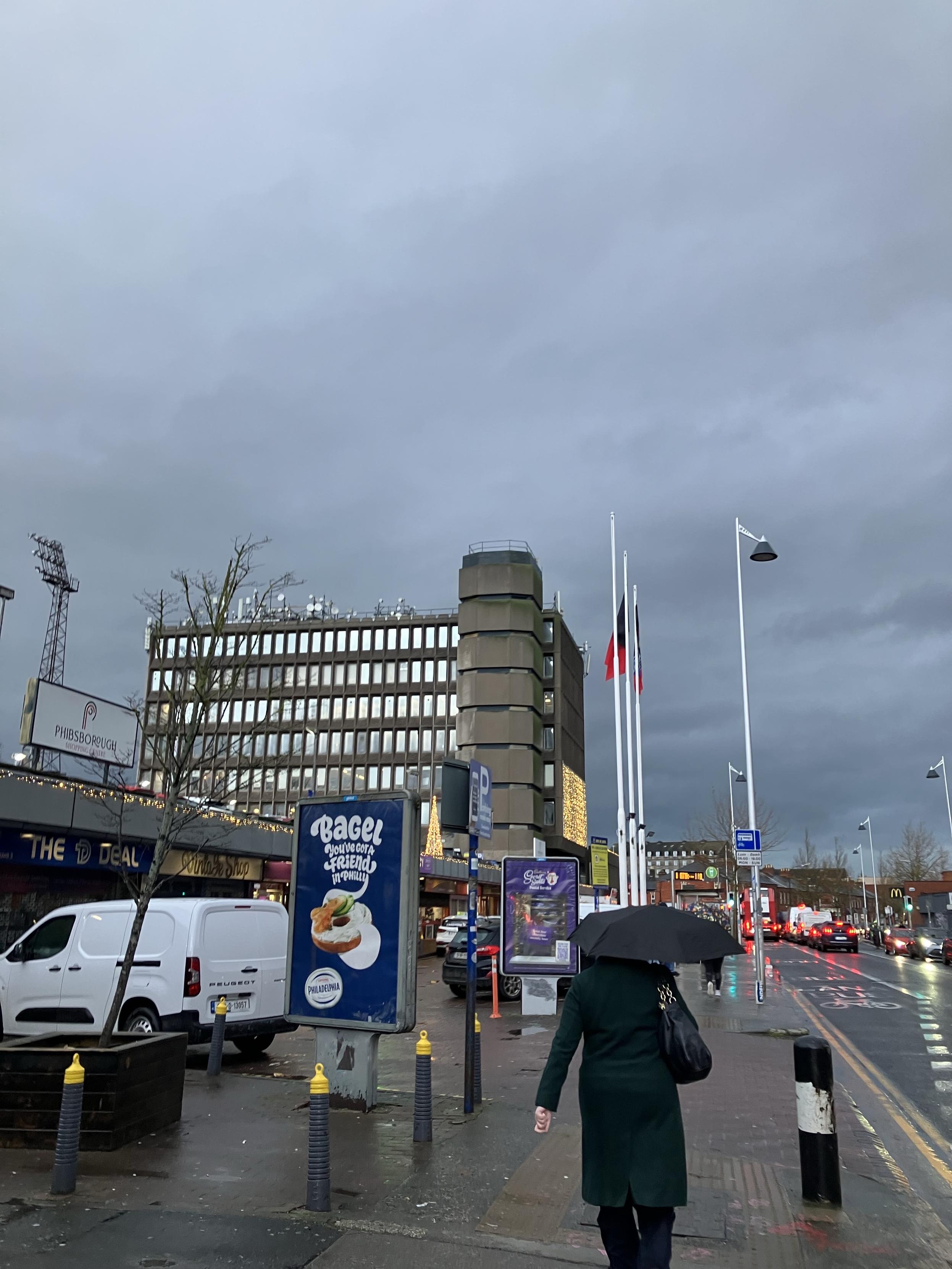 The dead-calm of this morning starting to lift in Dublin, as the Bohs flags at Phibsboro Shopping Centre are starting to flutter a bit..! 馃槵