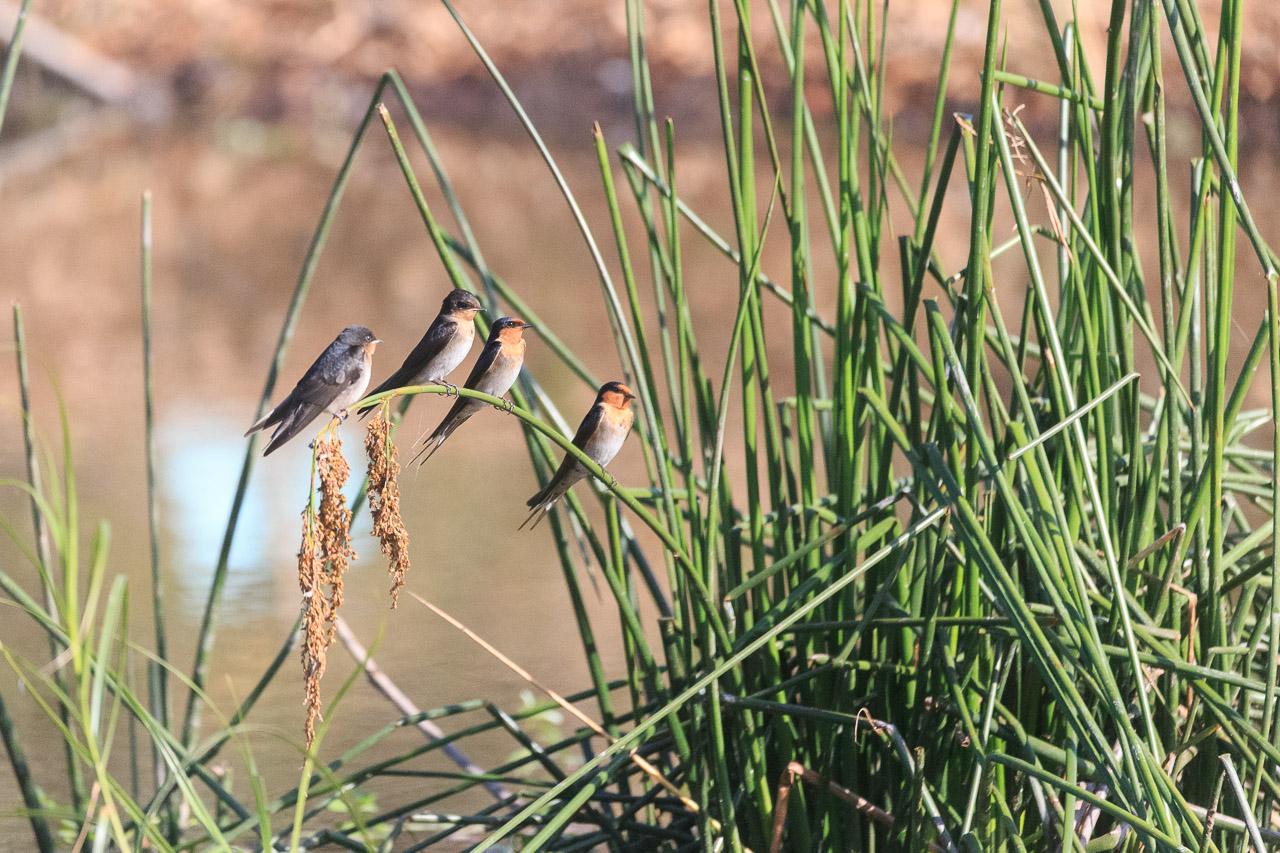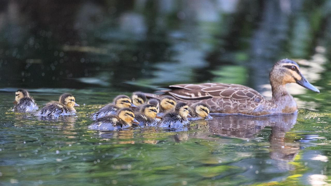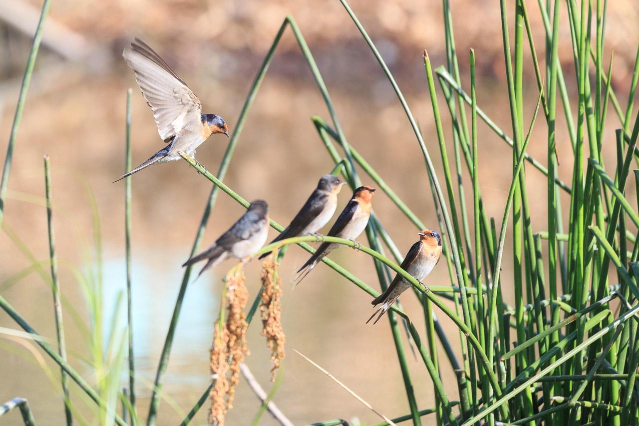 A sketchbook page of 7 drawings of Canada Geese in purple pen. At the top is the text 6/14/25 and Canada Goose. At the top right is a close up of a goose with its tongue out and calling. Below to the left and right are two geese flying with wings down and wings up. At the bottom left is a goose running in attack mode with an exclamation mark above its head. To the right of it is a close up of a goose head with a question mark and Attack? written next to its neck. To the right is a goose in profile with a heart above. To the right of that is a gosling with its wings outstretched.