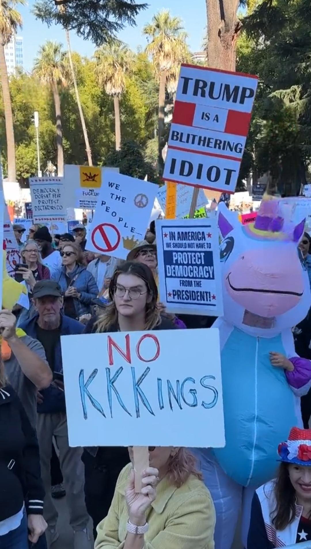 In the capital of California #NoKings look at the incredible messages on the protest signs.