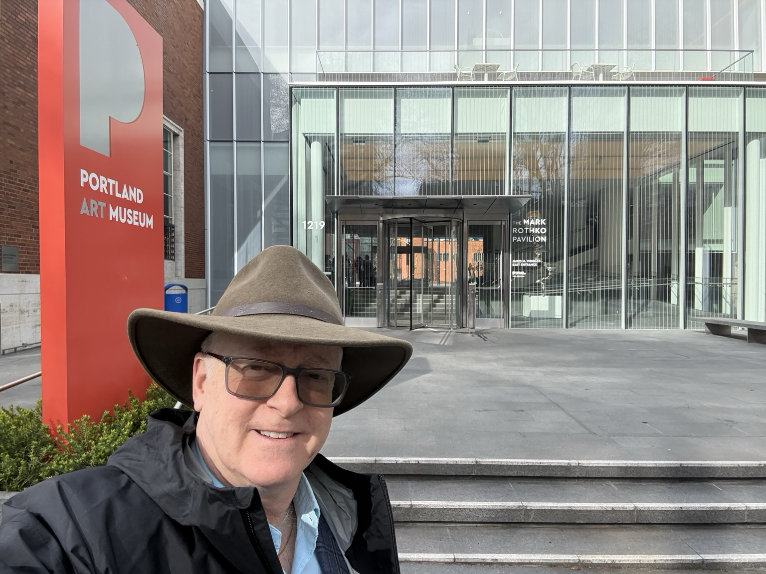 Selfie of the tooter outside the new Rothko Pavilion connecting the original Art Museum building (left) and a repurposed Mason Lodge purchased by the Portland Art Museum. The two older ‘wings’ had previously been connected by a tunnel!