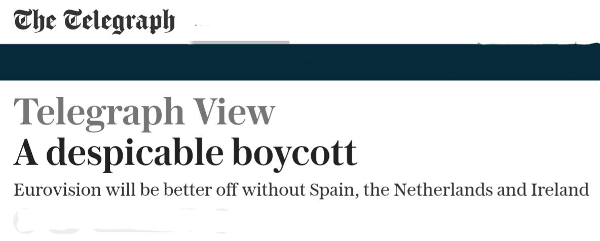 THREAD: The #DailyTelegraph is predictably outraged that #Eurovision 2026 is being boycotted by #Ireland, #Spain, and The #Netherlands, after the #EBU failed to ban #Israel. https://archive.is/vPmKk