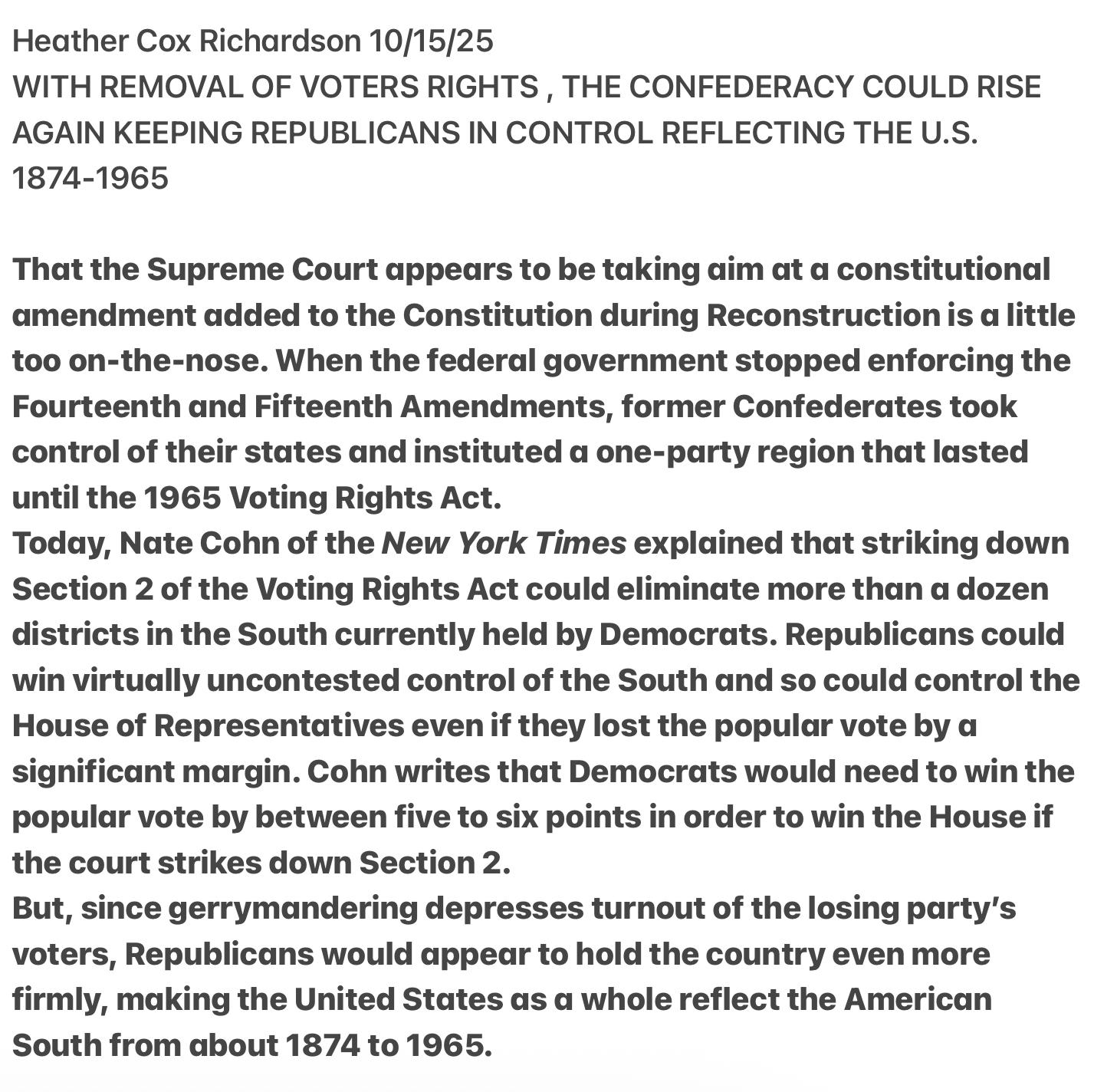 Heather Cox Richardson 10/15/25