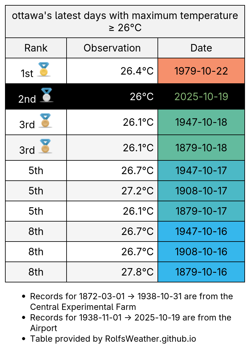 Today is #Ottawa's 4th latest day with maximum temperature ≥ 25°C. #YowWx #OttWeather