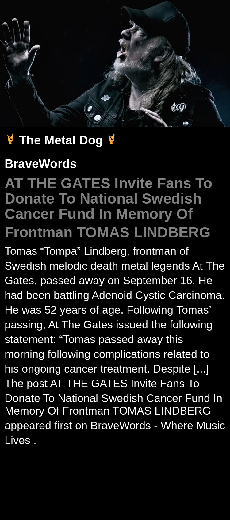 #ATTHEGATES #TOMASLINDBERG #InviteFansToDonateToNationalSwedishCancerFundInMemoryOfFrontman #deathmetal #melodicdeathmetal #EP #BraveWords #metal #music