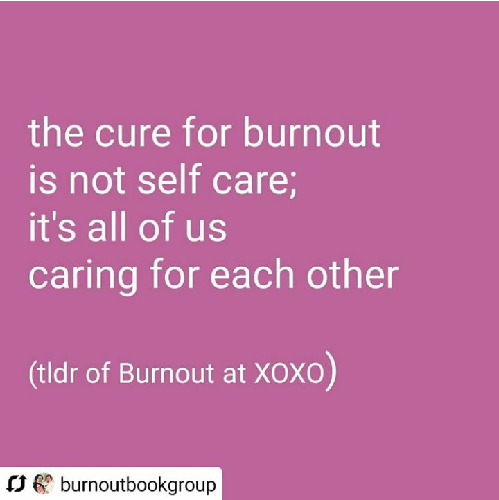 "the cure for burnout isn't self care; it's all of us taking care of each other"