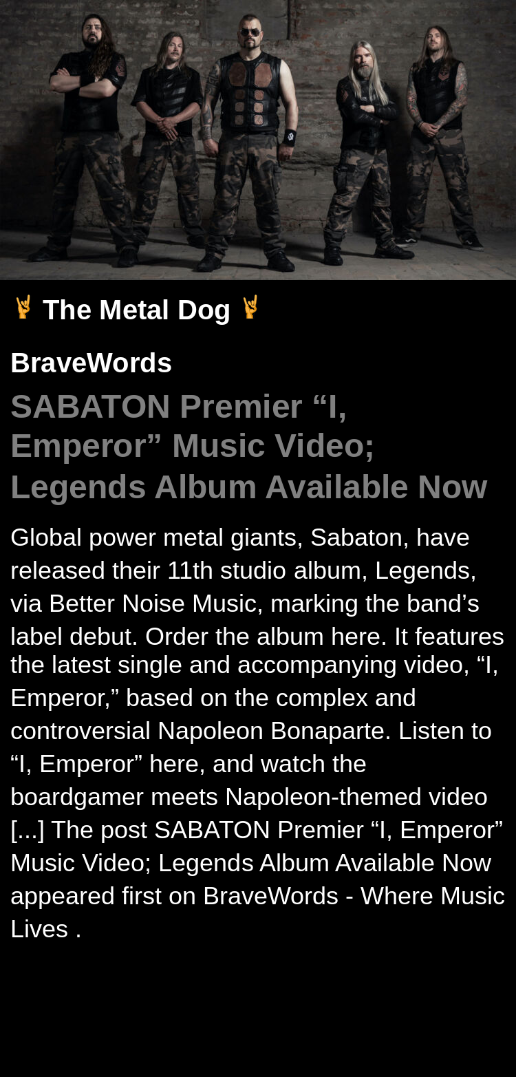 #SABATON#Premier#Emperor #powermetal #album #newrelease #single #video #musicvideo#BraveWords #metal #music