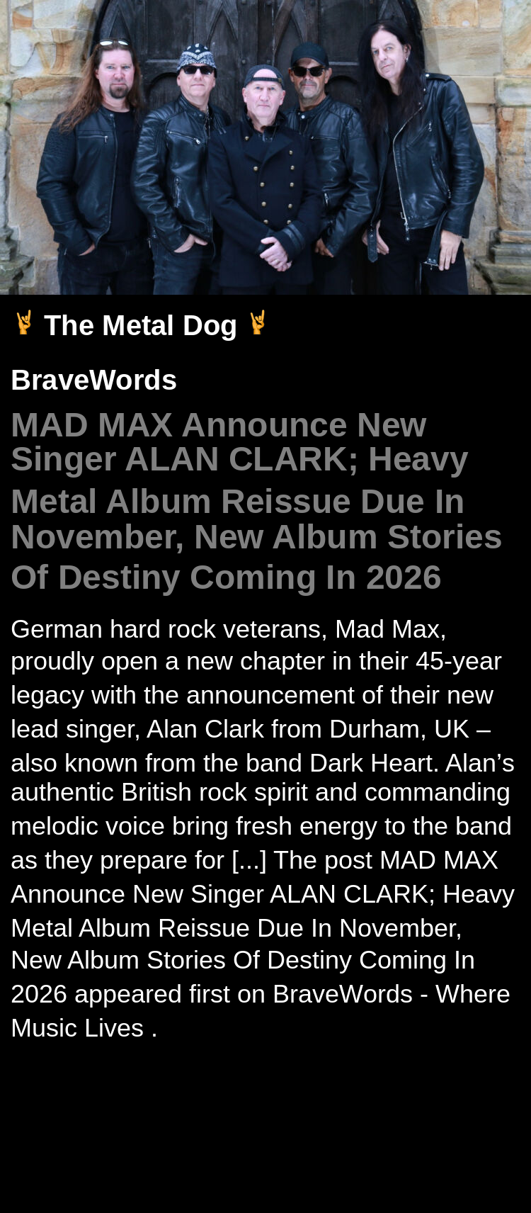 MAD MAX Announce New Singer ALAN CLARK; Heavy Metal Album Reissue Due In November, New Album Stories Of Destiny Coming In 2026