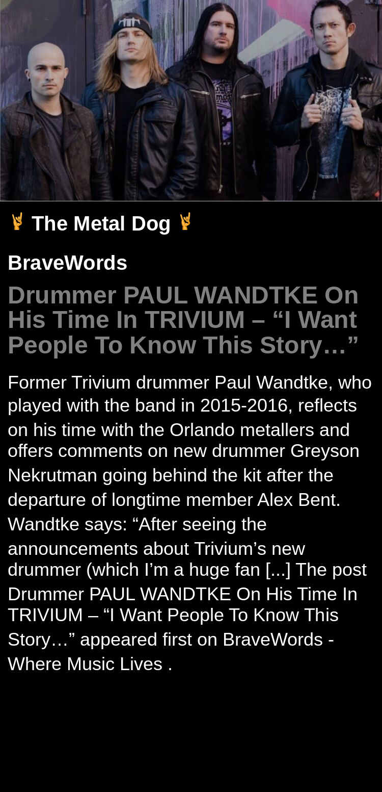 #PAULWANDTKE#TRIVIUM#Drummer#OnHisTimeIn#EP #announcement#BraveWords #metal #music