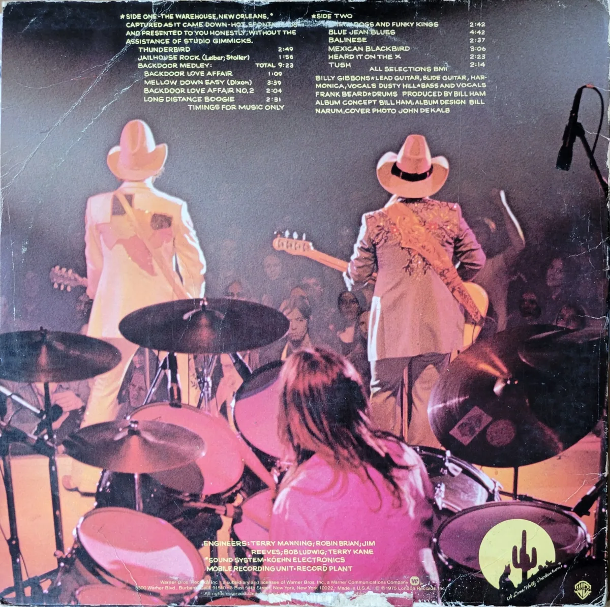 Fourth release from Texas blues band ZZ Top, Fandango! included an A side with live songs (from The Warehouse, in New Orleans) and a B side of new studio recordings.