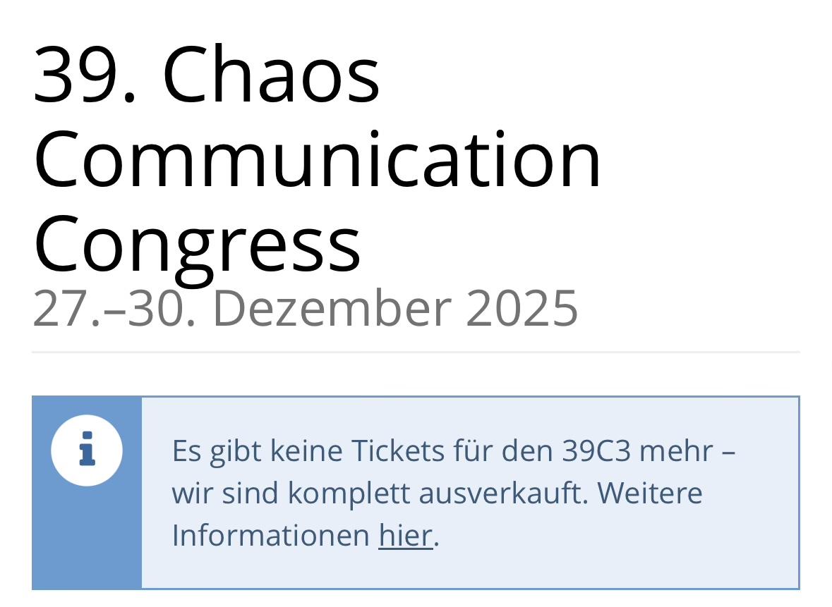 What a pity, I managed to get a day off for #39c3 this year. This world be my first time #attending there. When I wanted to but a ticket, there weren’t any left. Could anyone offer #help how I could get a ticket for the Congress?