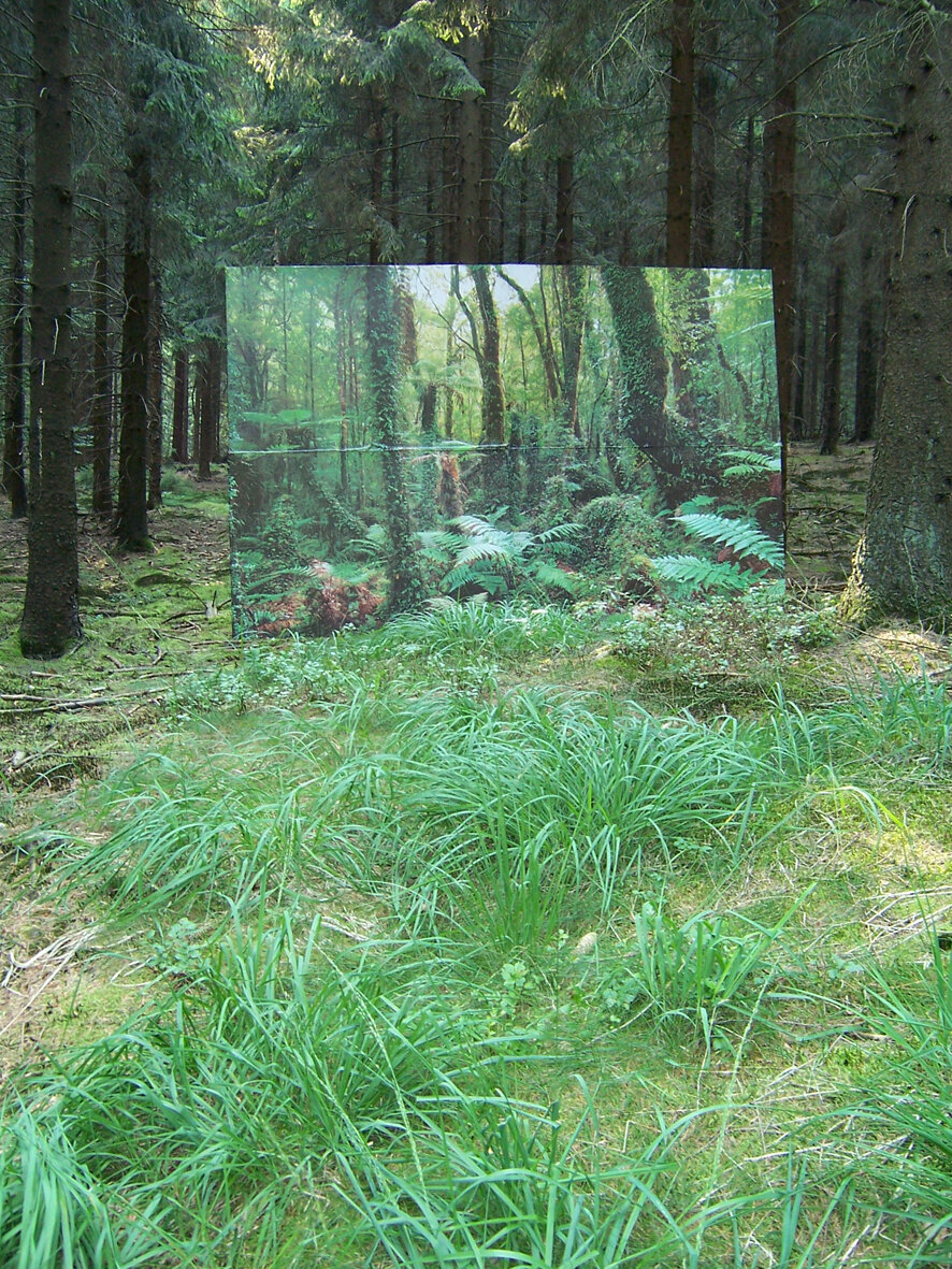 Over the last few days, I’ve been rummaging through my digital photo albums and found a few old works from the times when I used to stroll through the Westphalian forests together with Jan Philip Scheibe and we just made art for the sake of art. For this one we mounted a photo wallpaper ("Paradise") onto panels and staged it in the forest. There were more spruce trees back then.