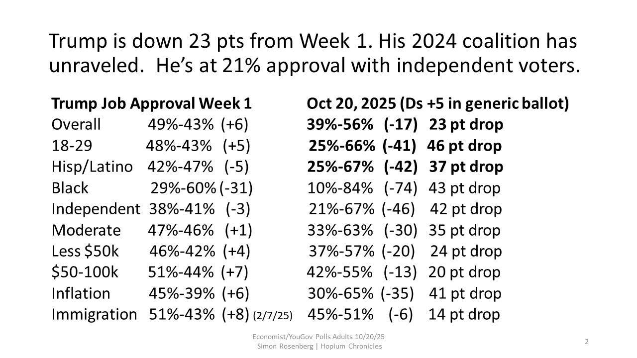 Simon Rosenberg shares the latest Economist/YouGov polling results, which shows Trump with a 21% approval rating among independent voters.