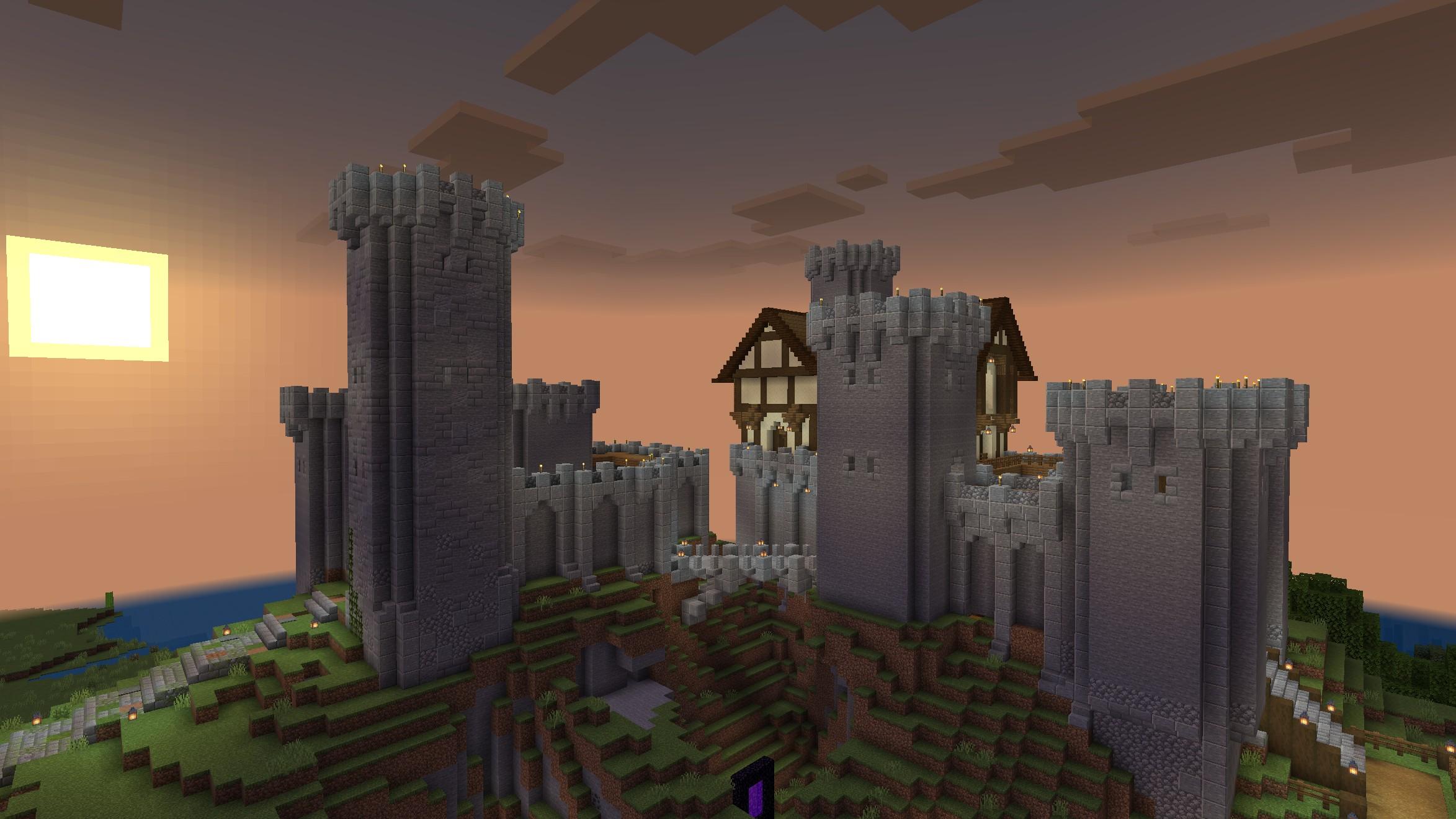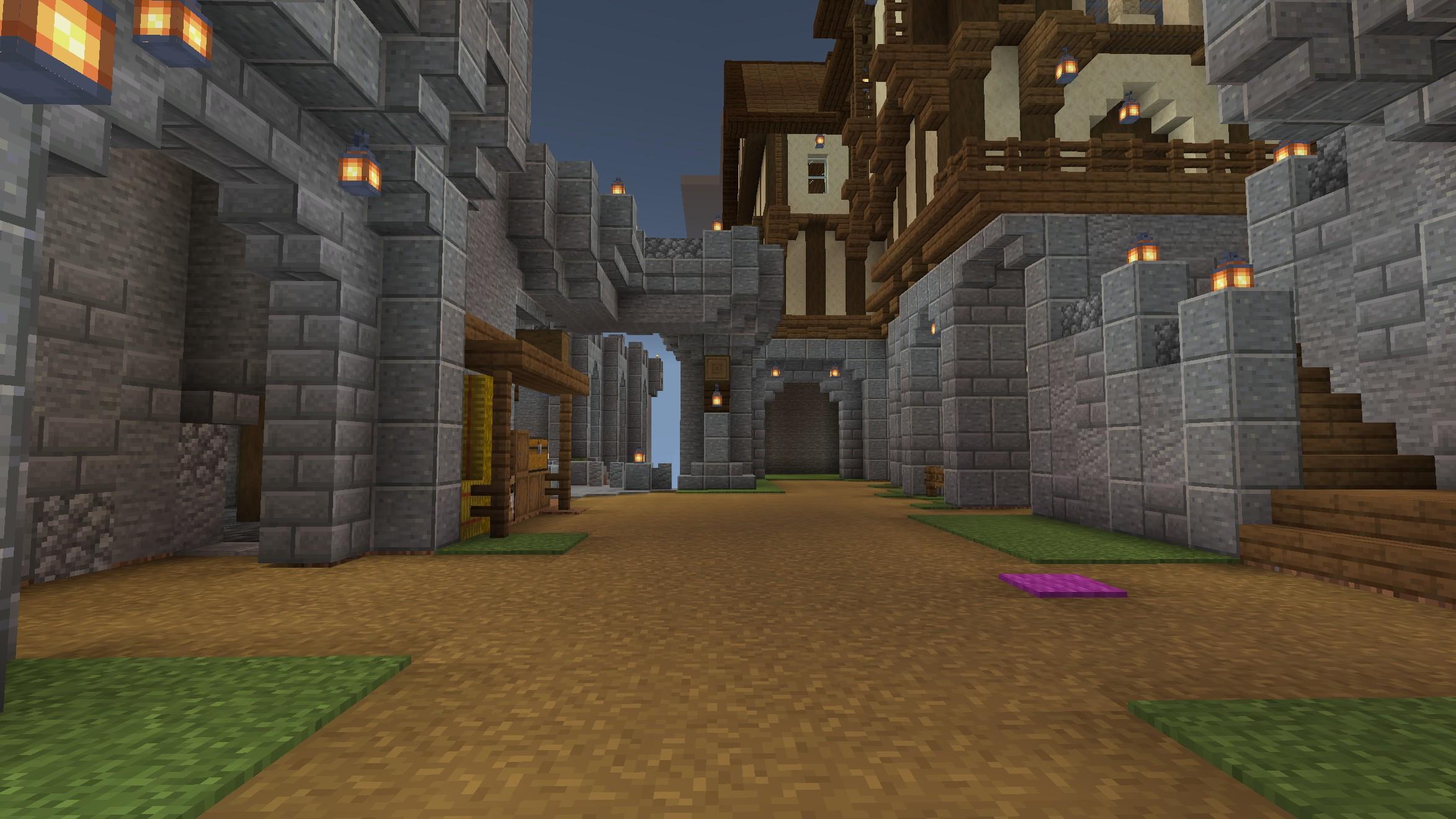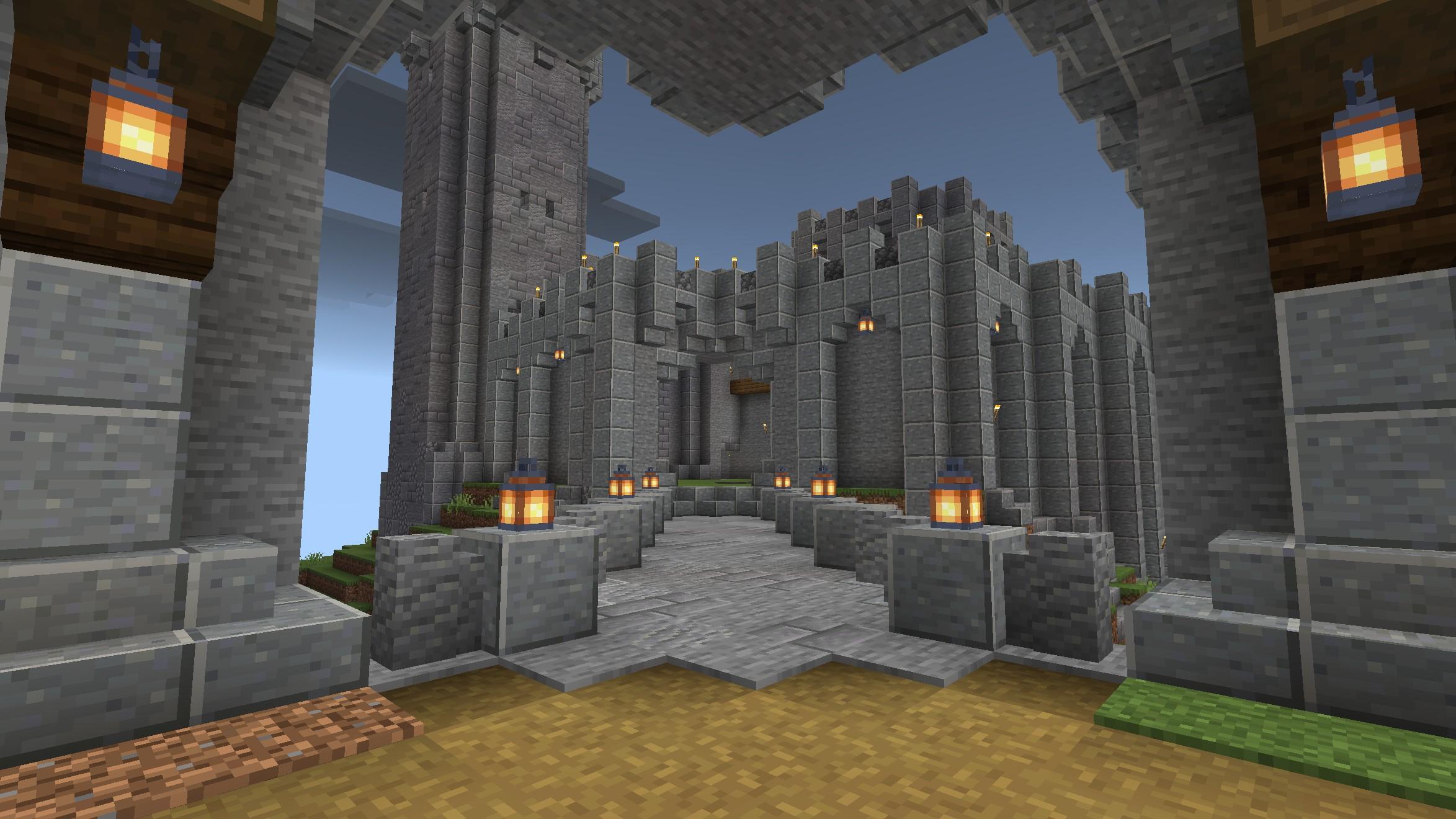 Some interior screenshots from the rightmost castle, showing the courtyard and bridge to the leftmost one. #minecraft