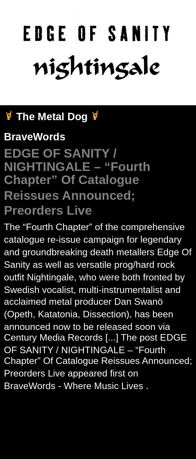 #EDGEOFSANITY#NIGHTINGALE#FourthChapter#OfCatalogueReissuesAnnounced #deathmetal #newrelease #announcement #vocalist #reissue#BraveWords #metal #music