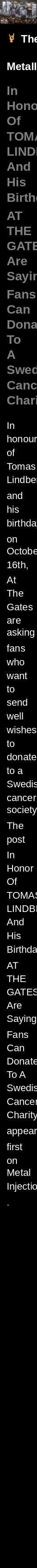 AT THE GATES Invite Fans To Donate To National Swedish Cancer Fund In Memory Of Frontman TOMAS LINDBERG