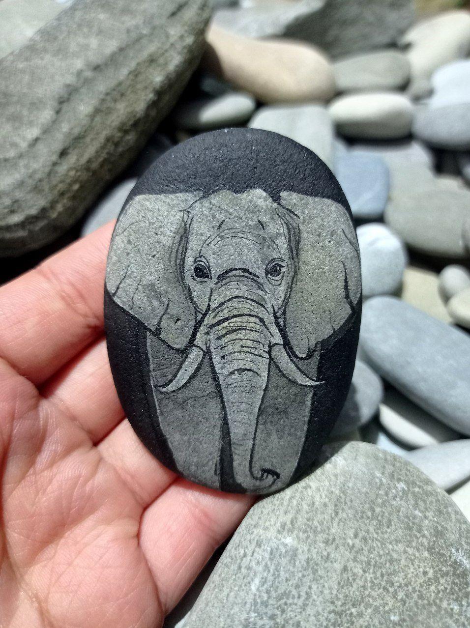 #inktober2025 #trunk #rock #stone #stonepainting #stoneart #ink #rockpainting #handmade #art #animal #elephant