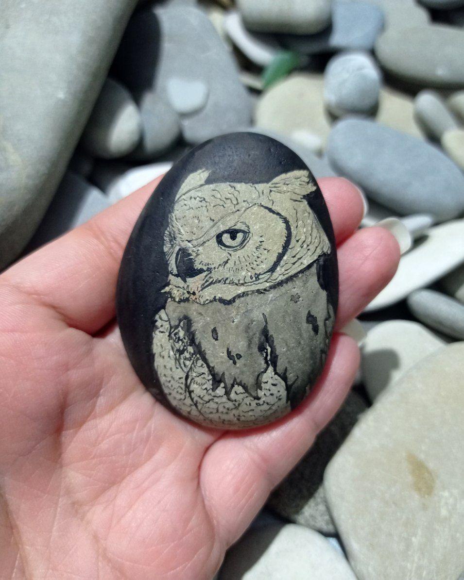 #inktober2025 #drink #rock #stone #stonepainting #stoneart #ink #rockpainting #handmade #owl #bird