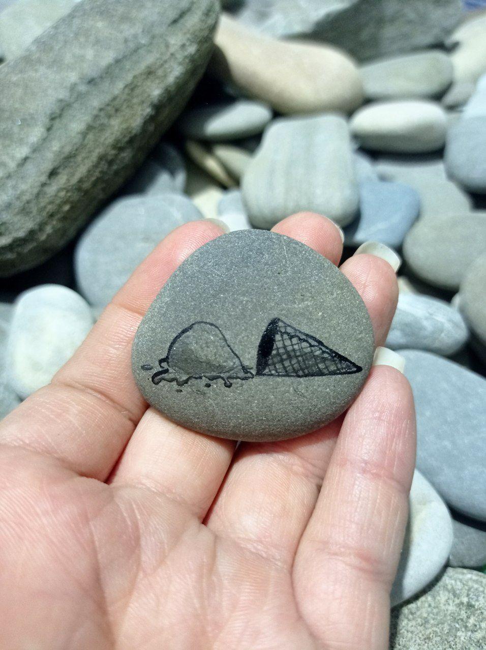 #inktober2025 #blunder #rock #stone #stonepainting #stoneart #ink #rockpainting #handmade #art #icecream