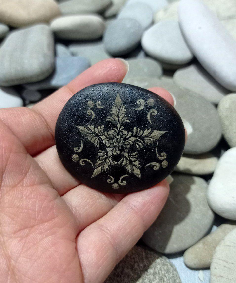 #inktober2025 #ornate #rock #stone #stonepainting #stoneart #ink #rockpainting #handmade #art