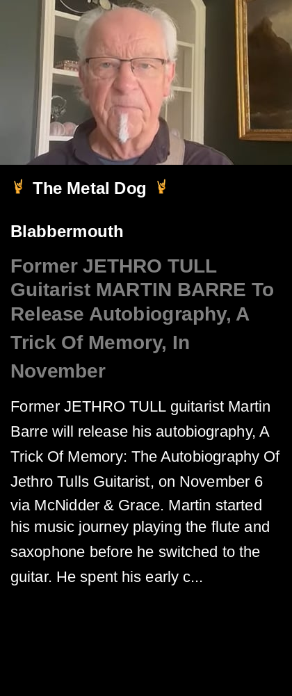 #JETHROTULL#MARTINBARRE#Former#Guitarist #newrelease#Blabbermouth #metal #music