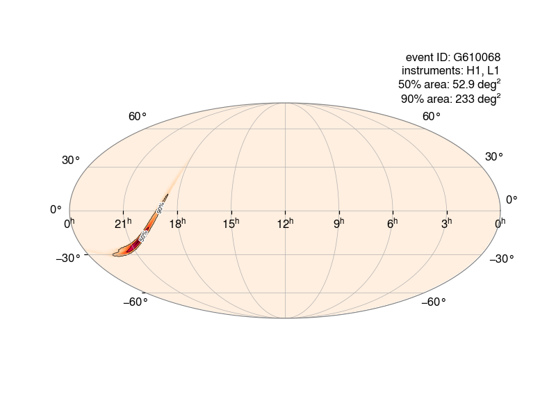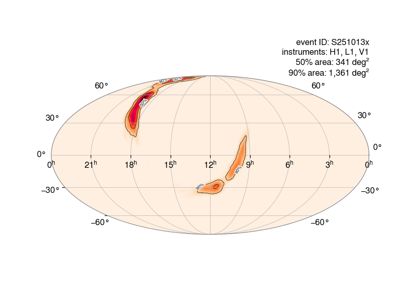 Sky map showing the most likely directions of origin of the candidate S251013x.