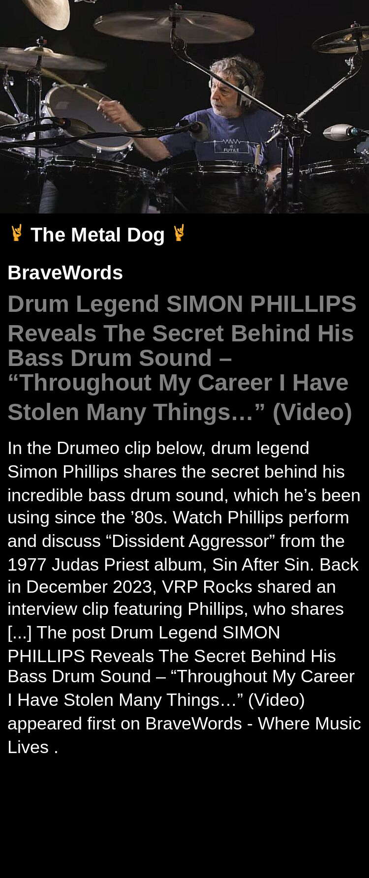 #SIMONPHILLIPS #DrumLegend #RevealsTheSecretBehindHisBassDrumSound #album #video #interview #BraveWords #metal #music