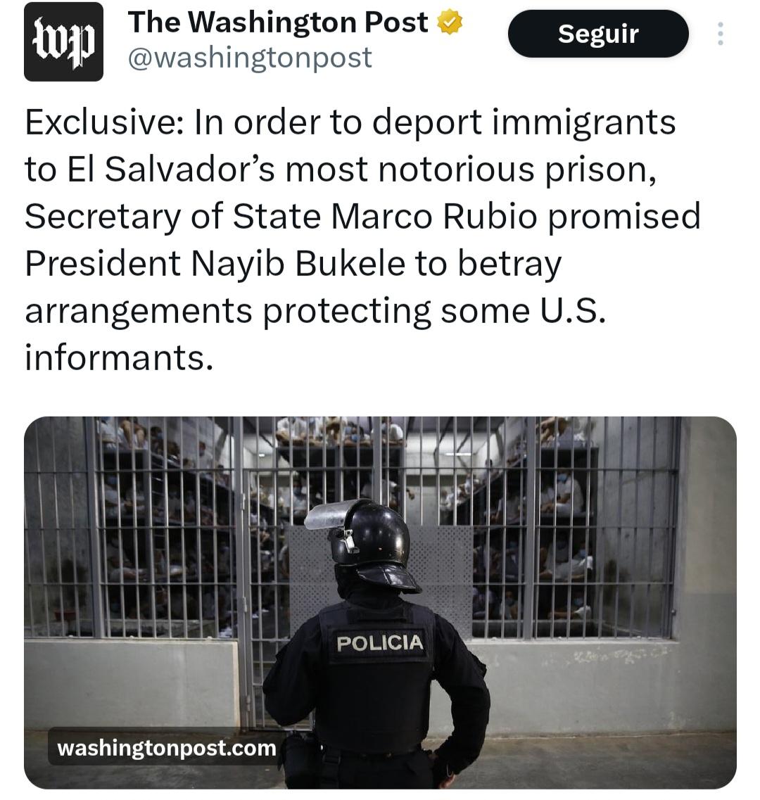 #MarcoRubio promised to betray #US #informants to get #Trump the #ElSalvador prison #CECOT for #deportations