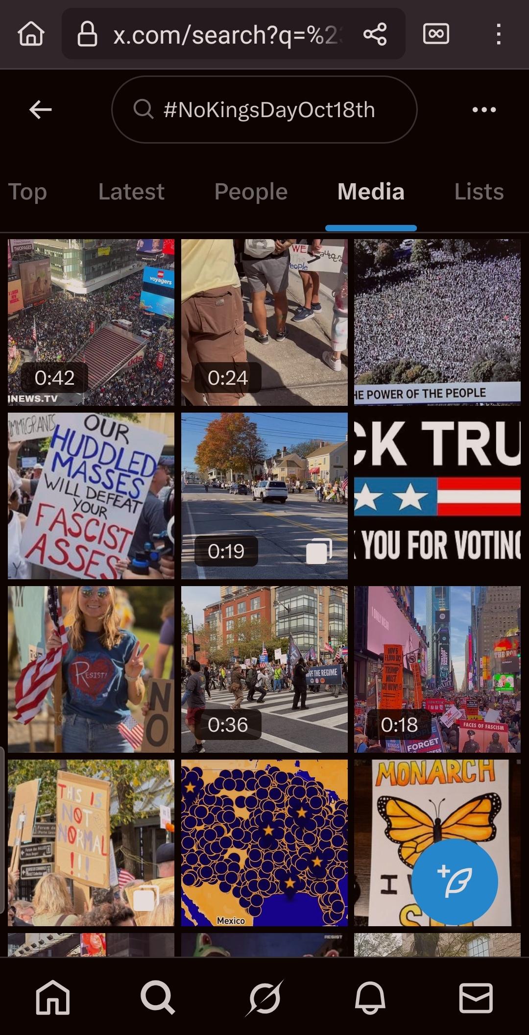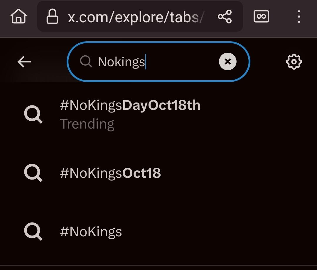 But I can still search #NoKings and #NoKingsDayOct18 shows up in the list as "trending" and I can still view those tweets that have that hashtag.
