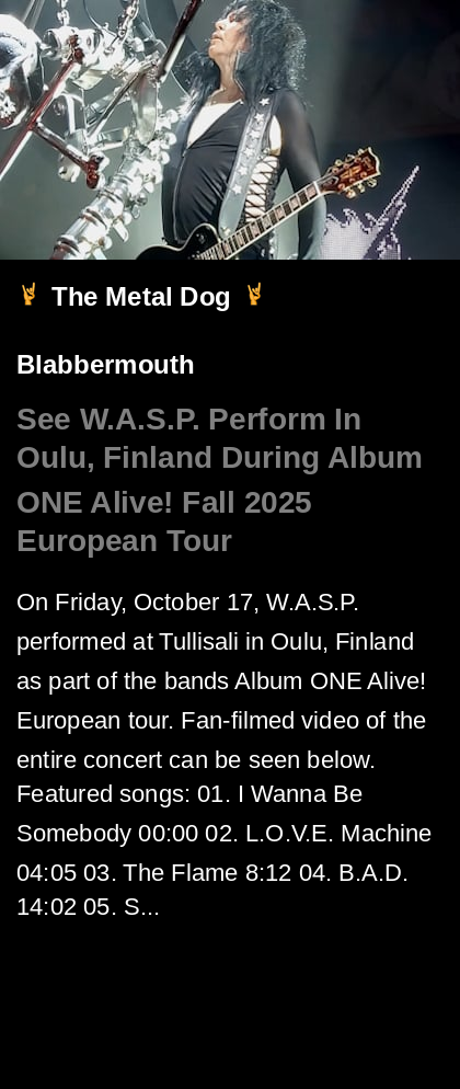See W.A.S.P. Perform In Oulu, Finland During 'Album ONE Alive!' Fall 2025 European Tour