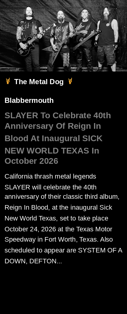 SLAYER To Celebrate 40th Anniversary Of 'Reign In Blood' At Inaugural SICK NEW WORLD TEXAS In October 2026