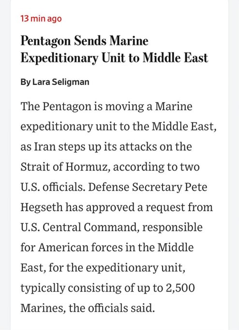 Escalatory‼️Can anyone stop #Trump, #Hegseth...⁉️ "Pentagon🚨is moving a MEU to the ME: 2,200-2,500 Marines & sailors.