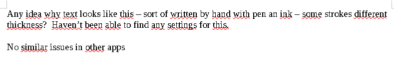 any suggestions what to do about text looking strange - rather hard to read, too. like handwritten with ink - not even strokes. nothing similar elsewhere in other apps or menus or...