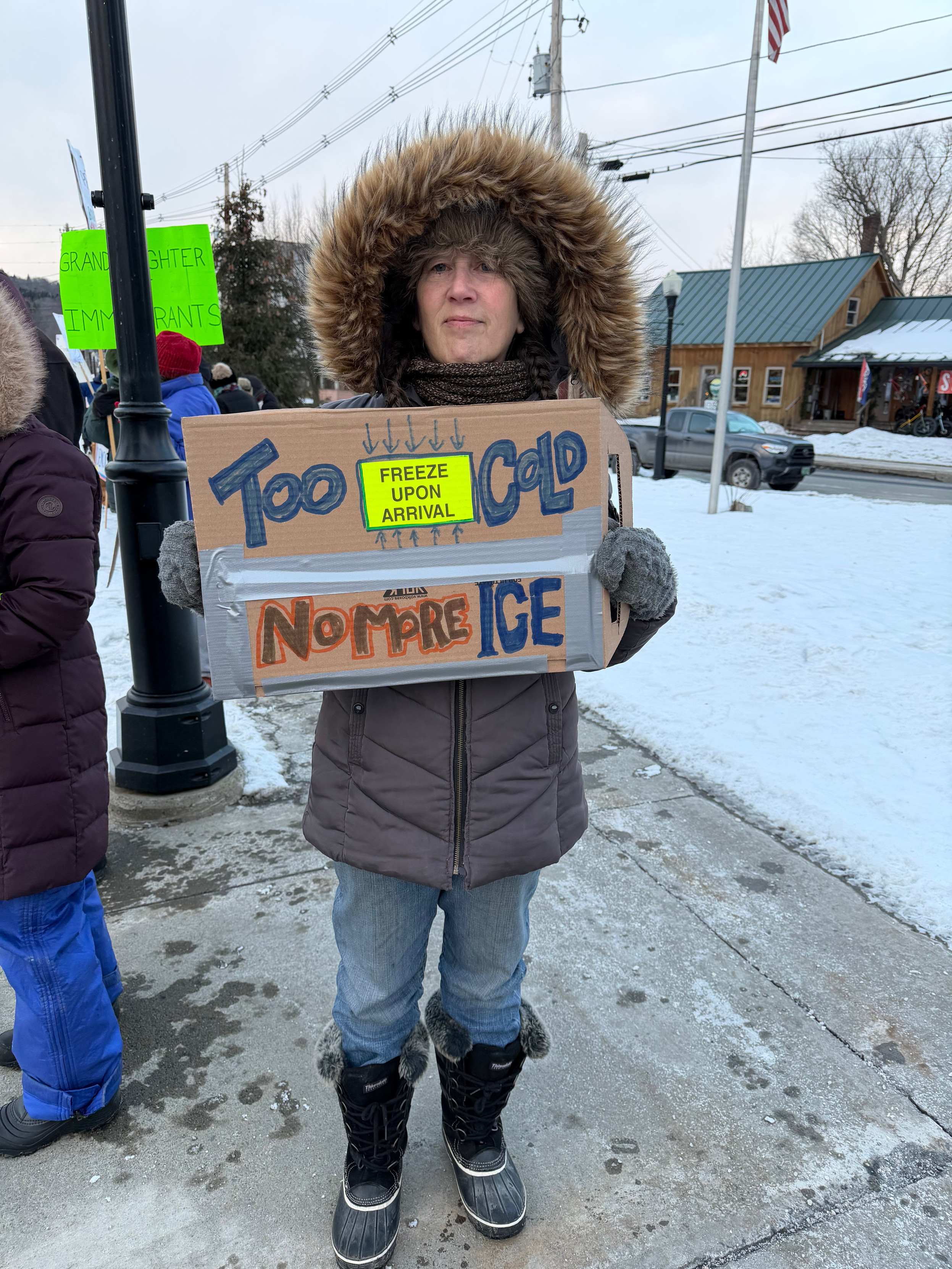 We stopped doing overpass demos for a time because it was cold and then we decided "Fuck it, we've got mittens." Today me and 14-ish neighbors braved the 20° F weather and hung our NO KINGS banner from and waved at traffic for two hours.