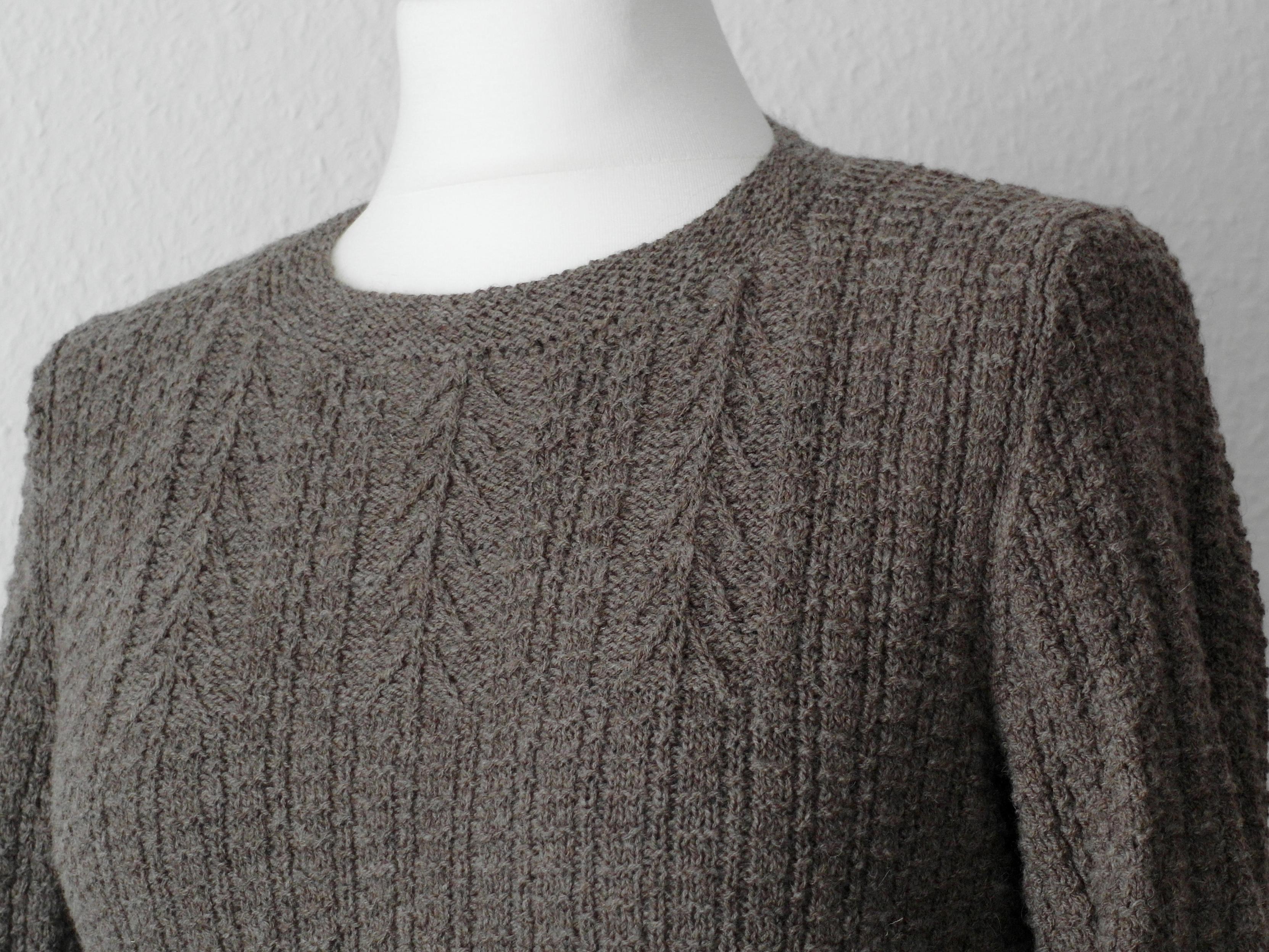my Forest River Gansey. Finished in 2016 and much loved. A few years later I decided it needs more lenghts, so I added a good amount in front and back. Much loved then. Another few years later I decided now maybe it's too long so I reknitted the "new made" part a little less long. By now, I'm very happy with it and think it's perfect for the next years. 🥰